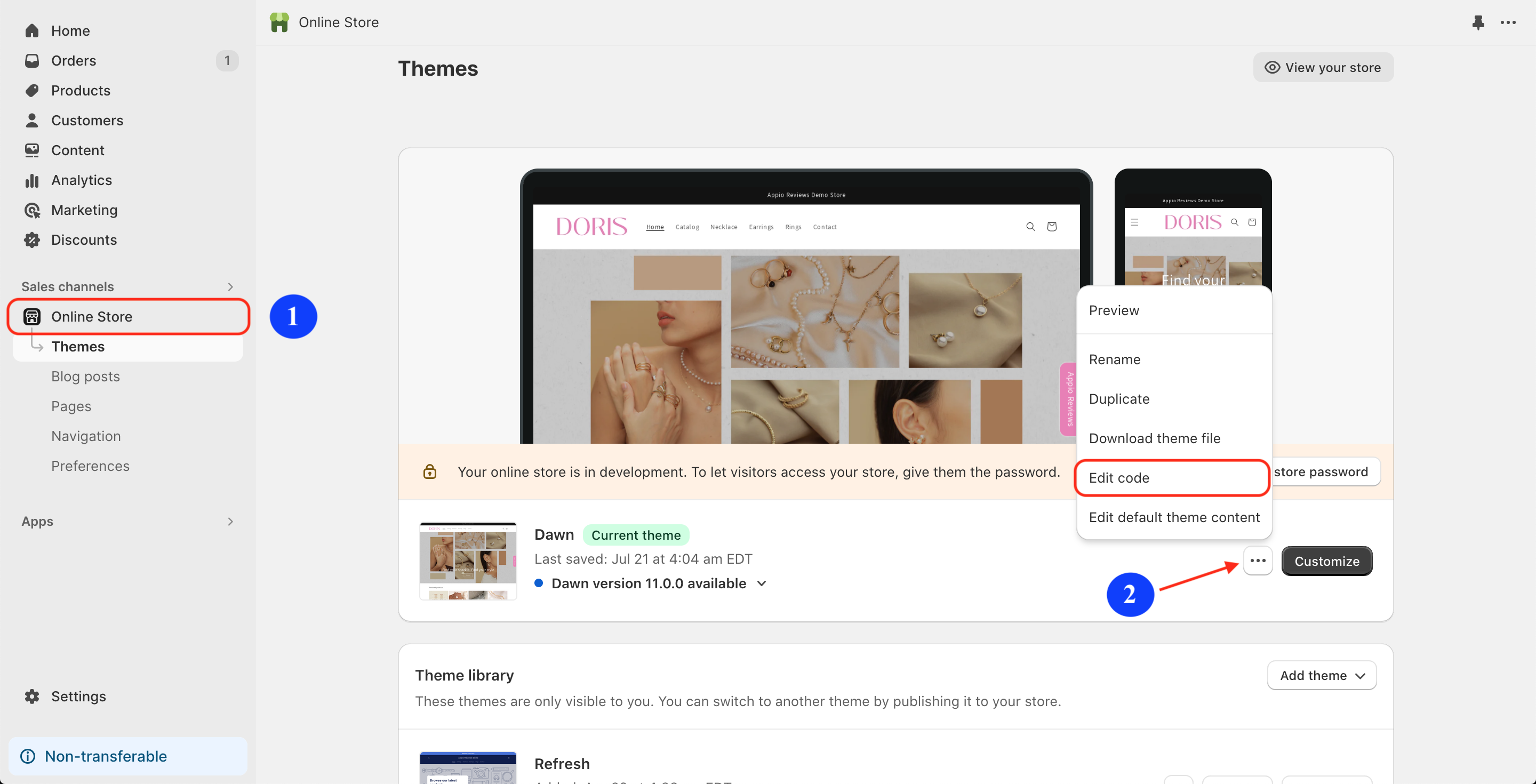 Go to Online Store and click Edit code