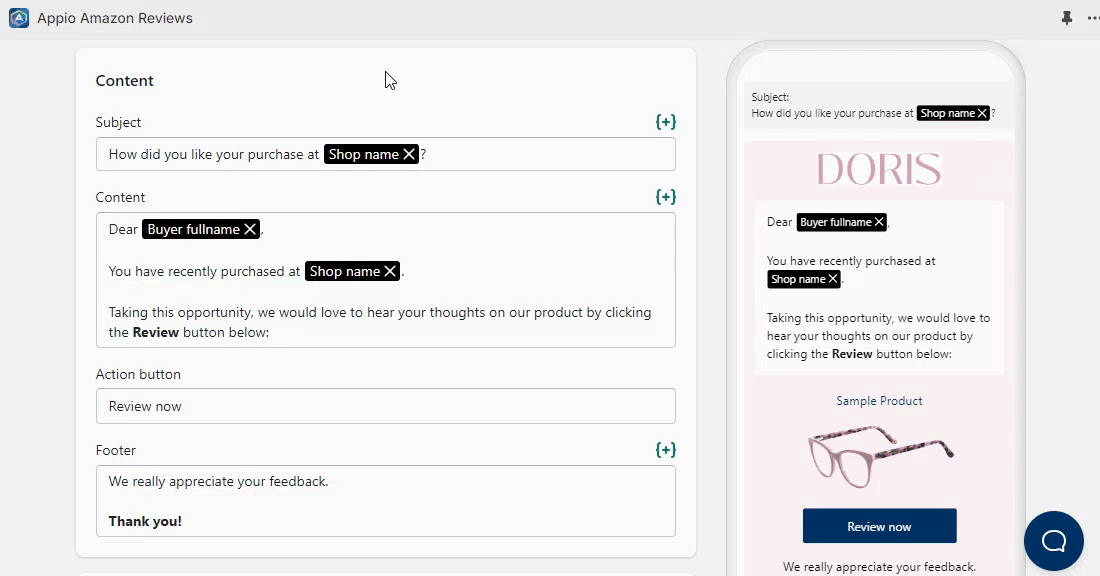 By default, all review request emails will be using Appio's default template including subject, content body, footer, text & color, logo and banner.