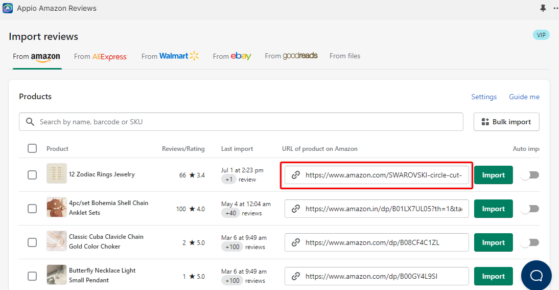 From product list below, paste the URL link of Amazon product you want to import then click Import