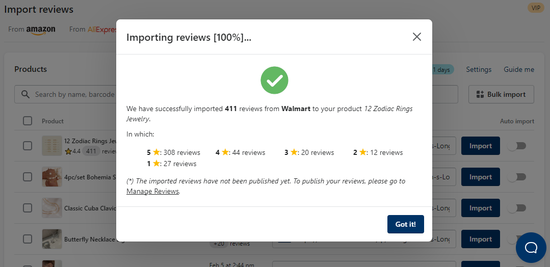 This feature is only available in Premium/VIP plan. Import up to 500 reviews per import.