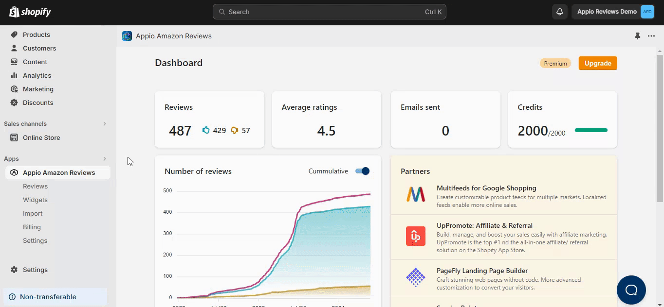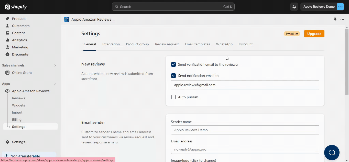 By default, the review requests are sent from Appio Reviews ([email protected]). But if you upgrade to our Premium Plan, you can use your own email and name as the sender. This feature will help you increase your open and response rates, and build trust with your customers.