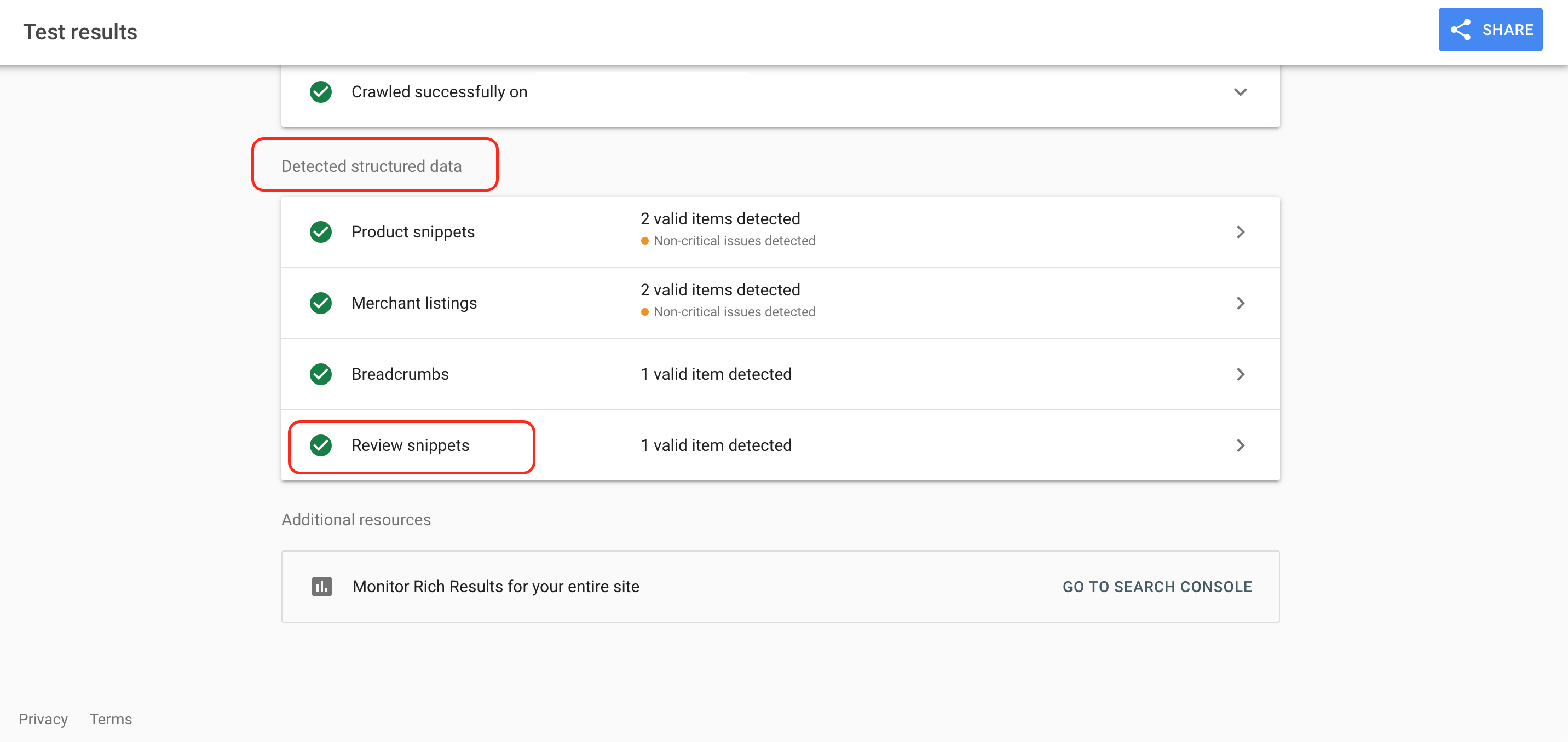 Under "Detected structured data" click "Review snippets"
